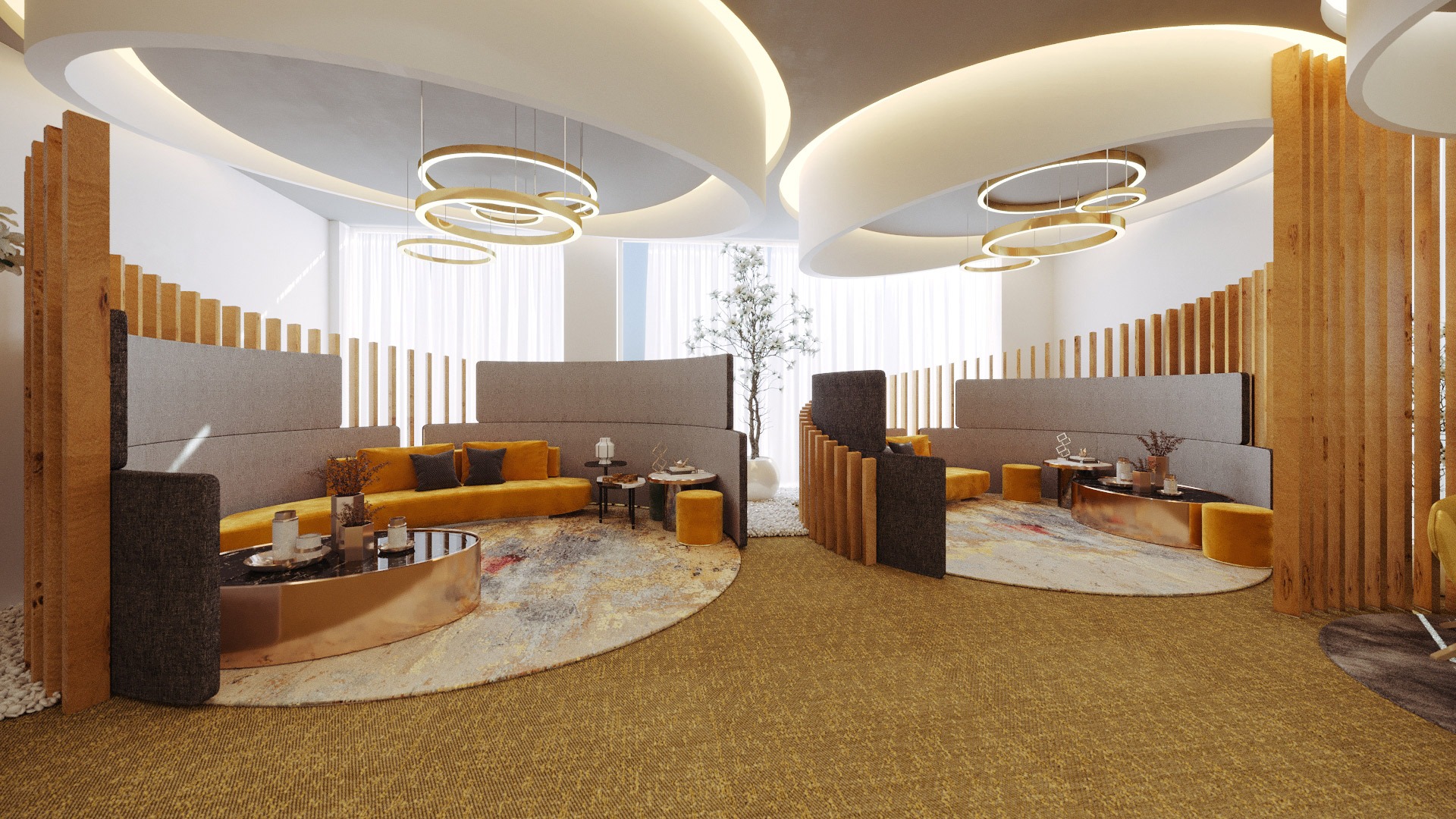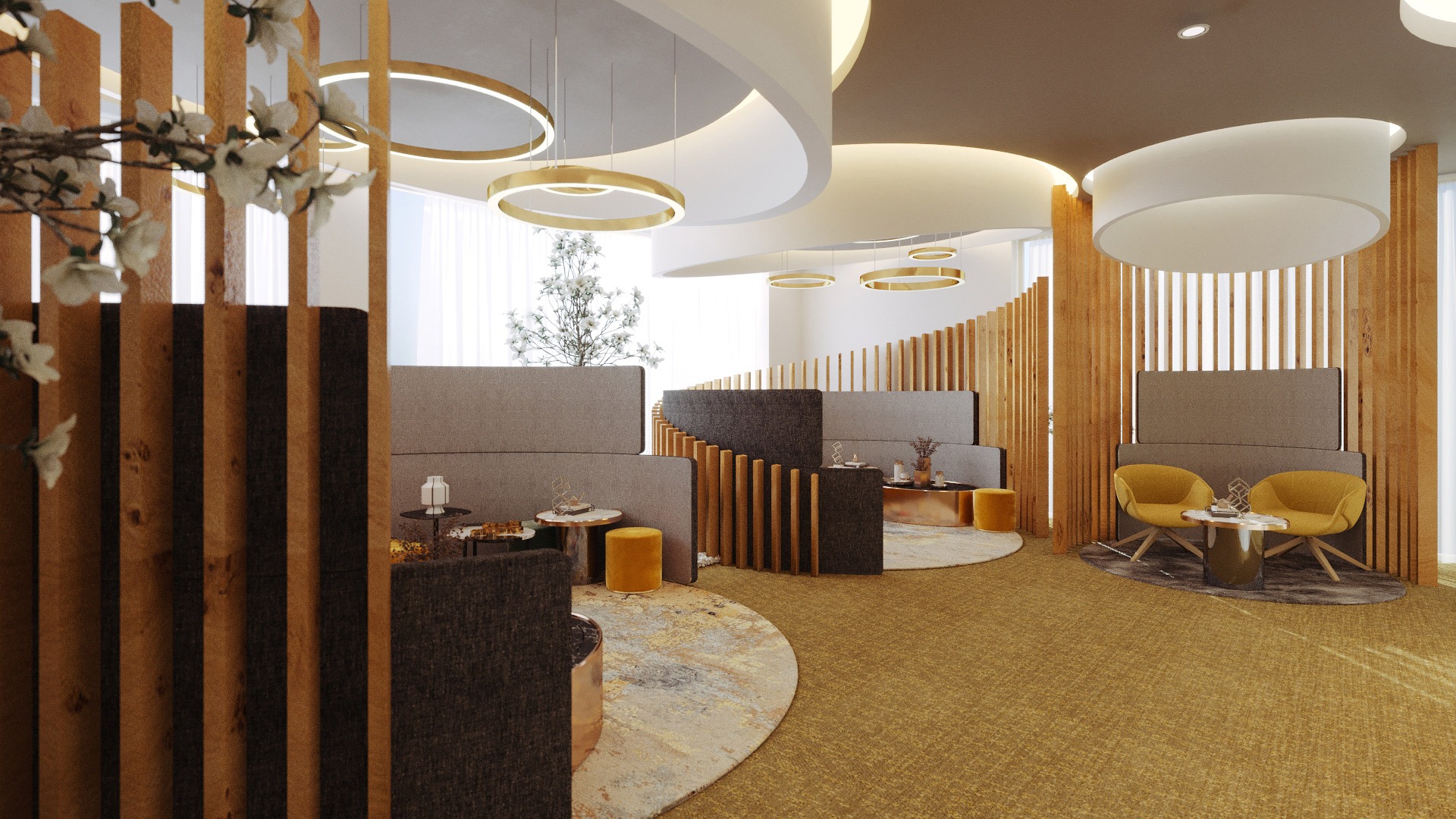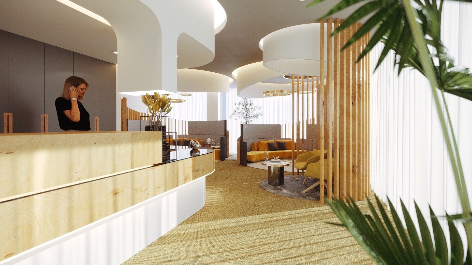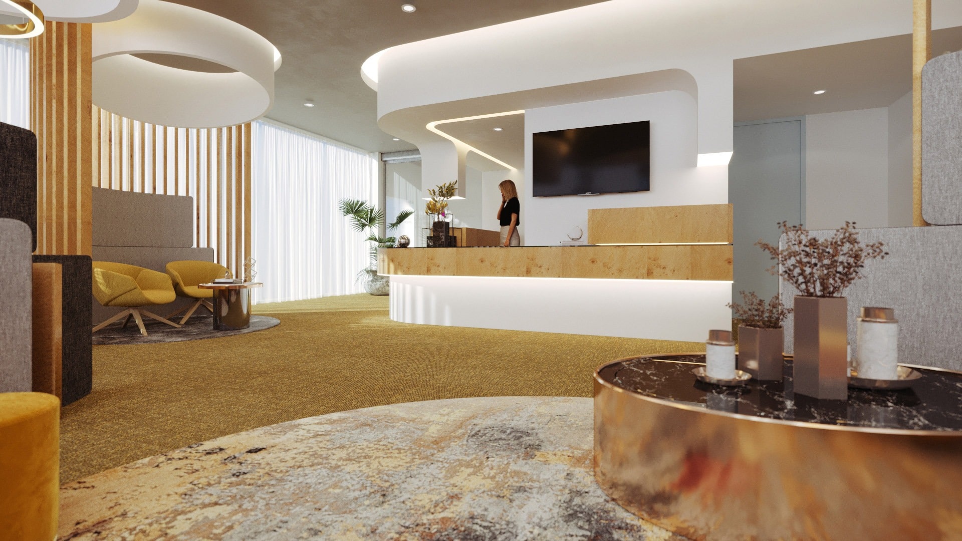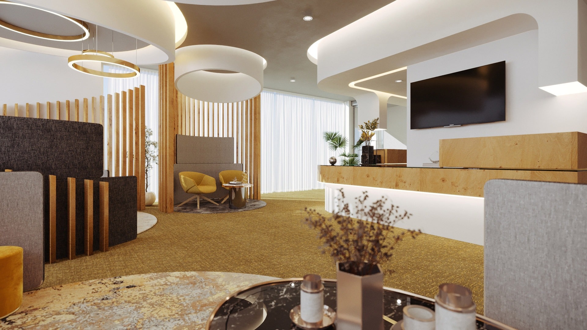 The design concept sets it apart from any other dental clinic ever built. In the reception area, each seating area emphasizes intimacy, warmth and personalized service. By using space-defining elements, such as vertical slats, we were able to define intellectualized spaces, increasing their level of privacy. The dynamics of the space appear as a result of the organic use of the line, curved and enveloping, which introduces us to the succession of spaces in an instructional way.